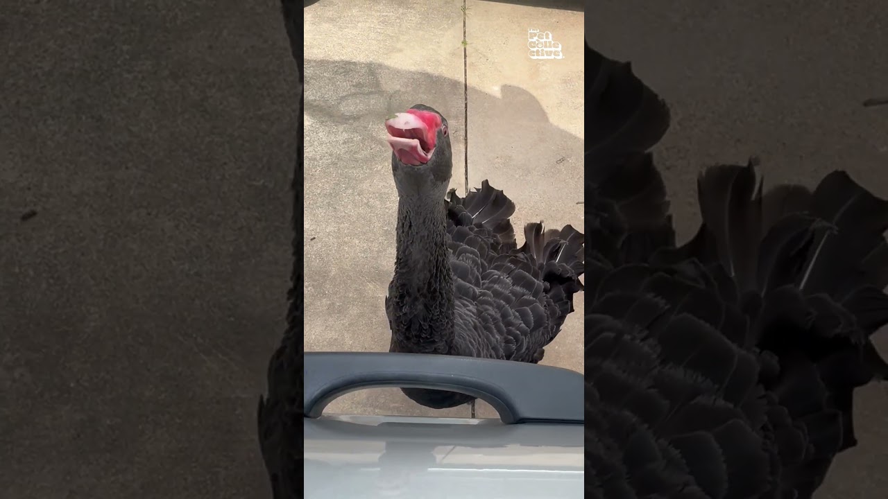 Un cygne noir vocal accueille une femme à l'extérieur de sa voiture